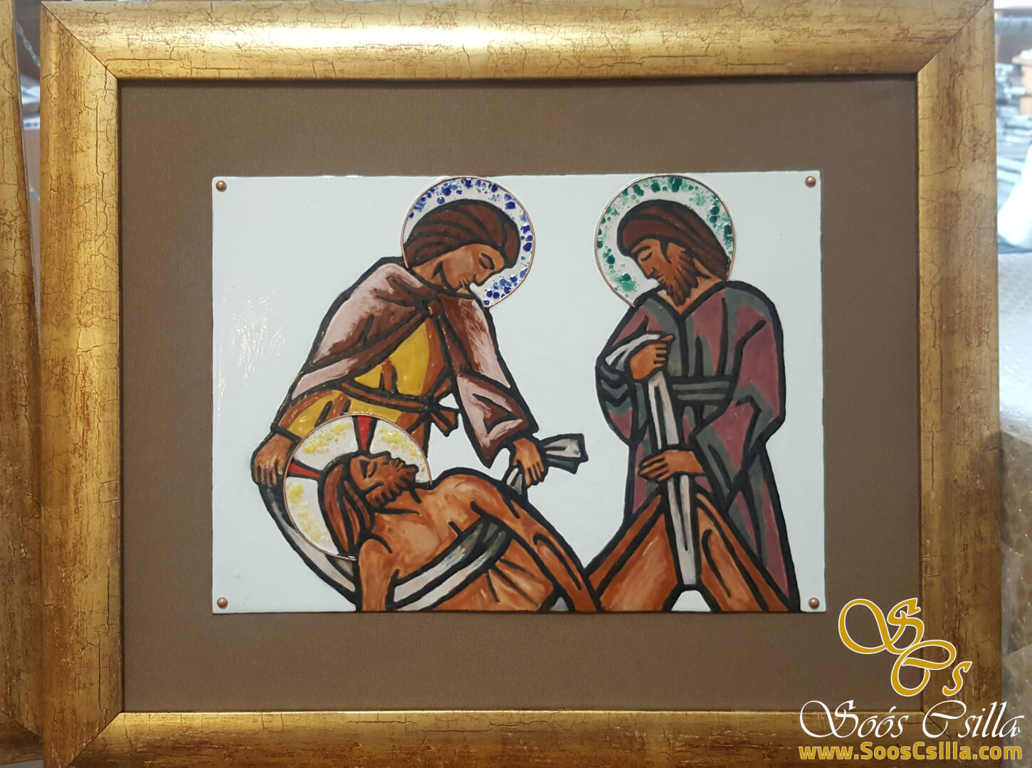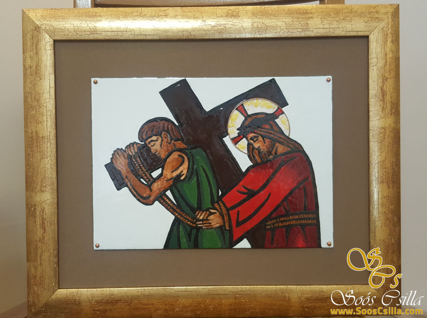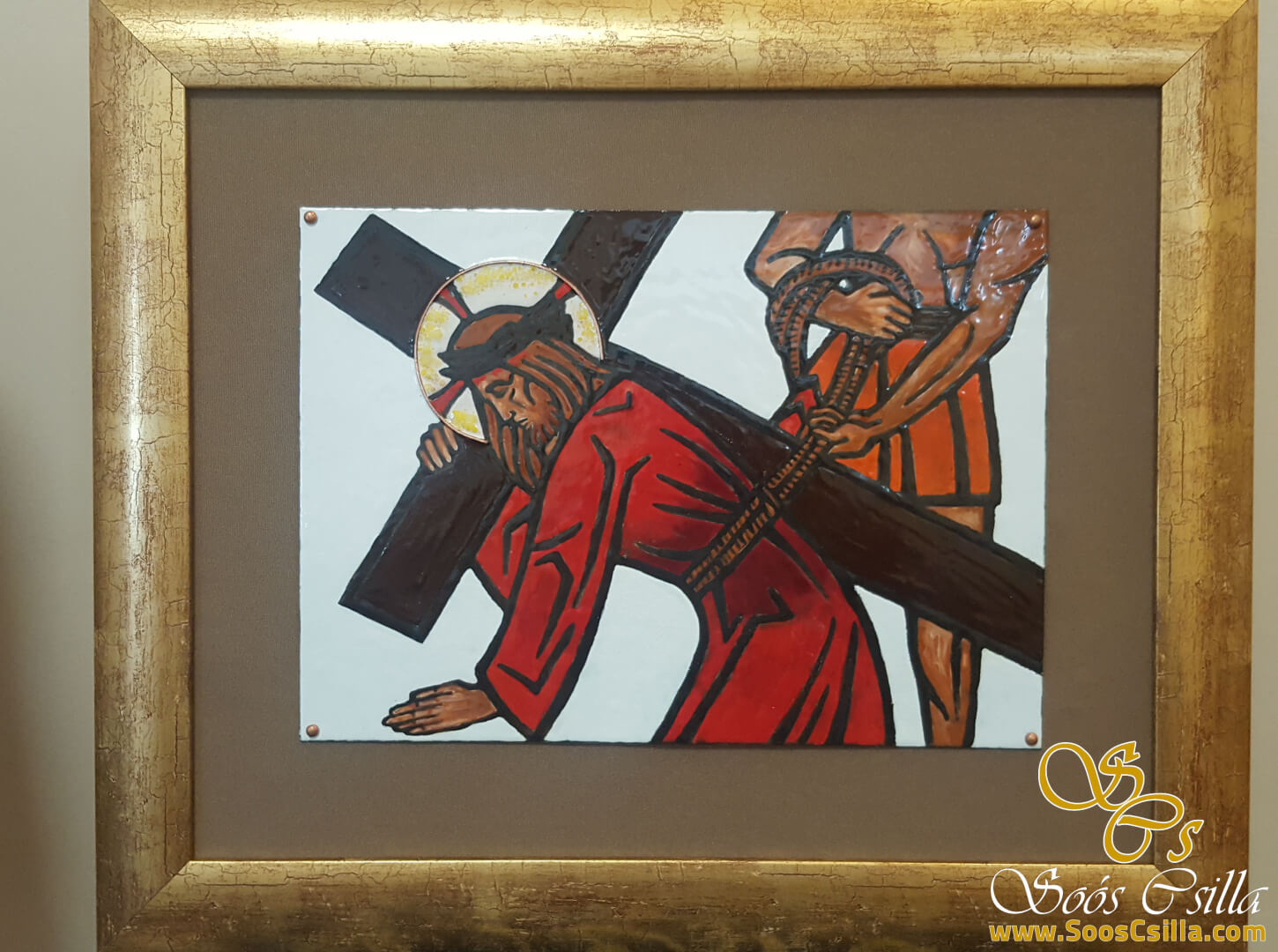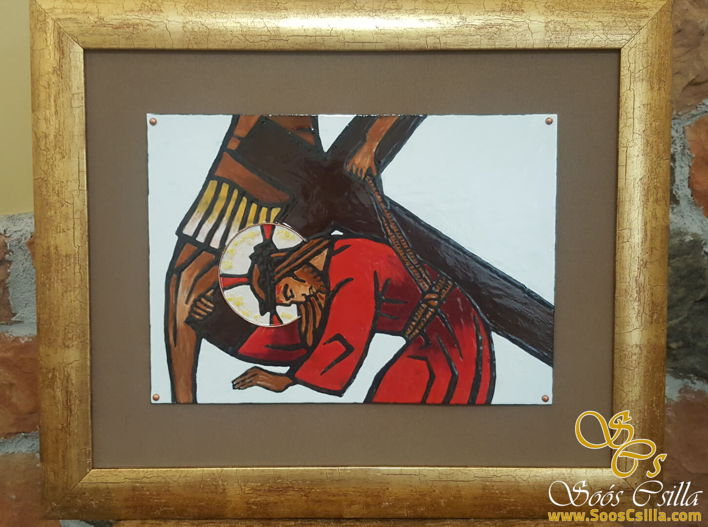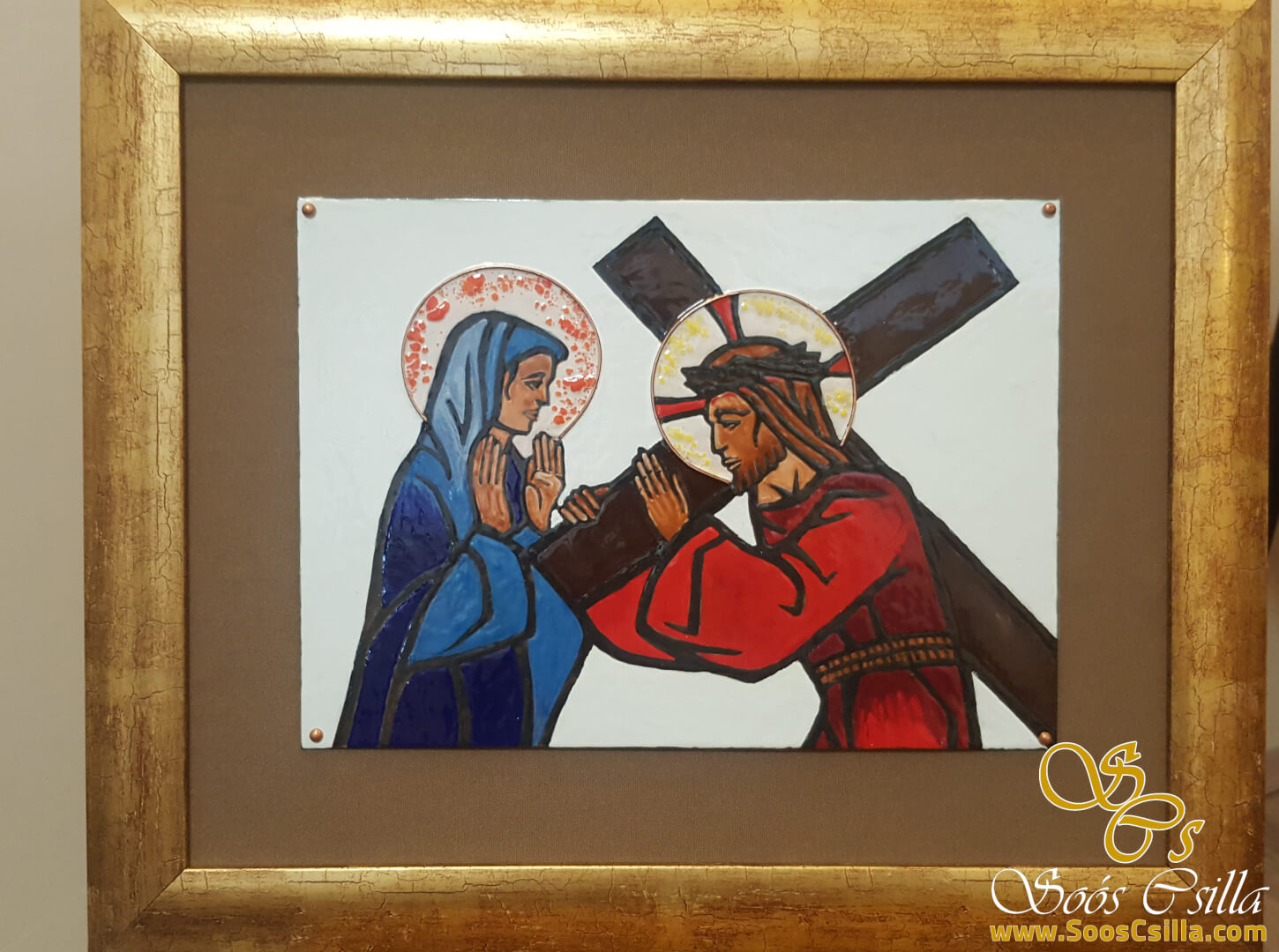 Ólomüveg készítés mellett tűzzománc készítéssel is foglalkozom. A képeken Jézus kínszenvedése látható, azaz a Stációk. A tűzzománc rézlemezre készül, 980 celsius fokon van a zománc ráégetve a lemezre, amely a hő hatására üvegessé és csillogóvá válik. Ezután a sem a nap, sem a fagy se hó se semmilyen időjárási körülmény nem tud benne kárt tenni. Bátran ajánlom kültérre is, házszámnak, képnek, festményként stb.